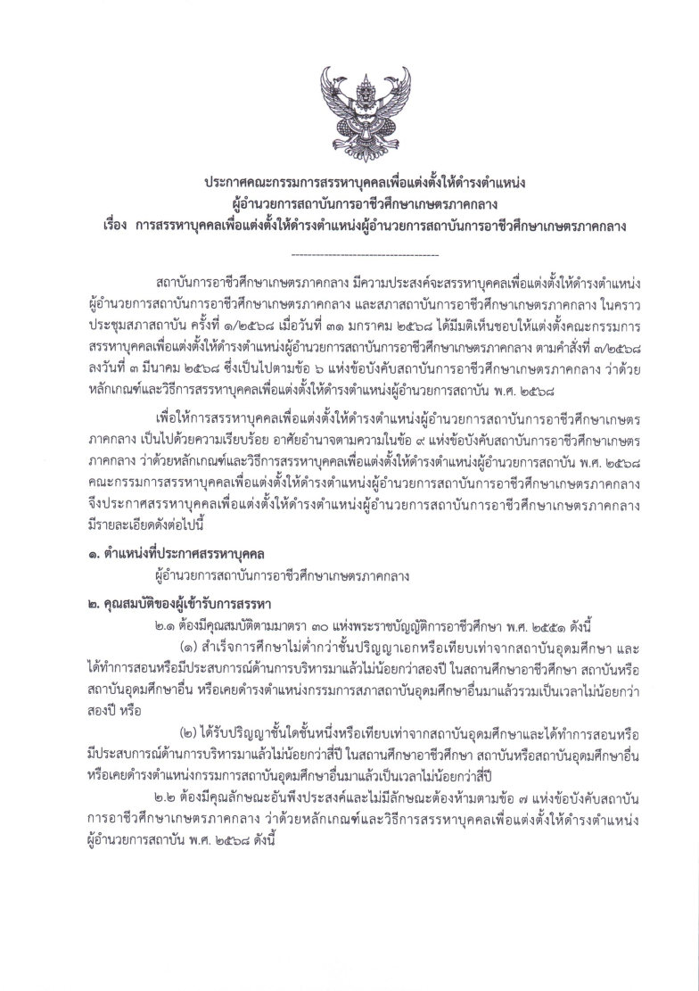 ประกาศคณะกรรมการสรรหาบุคคลเพื่อแต่งตั้งให้ดำรงตำแหน่งผู้อำนวยการสถาบันการอาชีวศึกษาเกษตรภาคกลาง เรื่อง การสรรหาบุคคลเพื่อแต่งตั้งให้ดำรงตำแหน่งผู้อำนวยการสถาบันการอาชีวศึกษาเกษตรภาคกลาง ประกาศคณะกรรมการสรรหาบุคคลเพื่อแต่งตั้งให้ดำรงตำแหน่งผู้อำนวยการสถาบันการอาชีวศึกษาเกษตรภาคกลางเรื่อง การสรรหาบุคคลเพื่อแต่งตั้งให้ดำรงตำแหน่งผู้อำนวยการสถาบันการอาชีวศึกษาเกษตรภาคกลาง เอกสารเพิ่มเติม ประกาศ