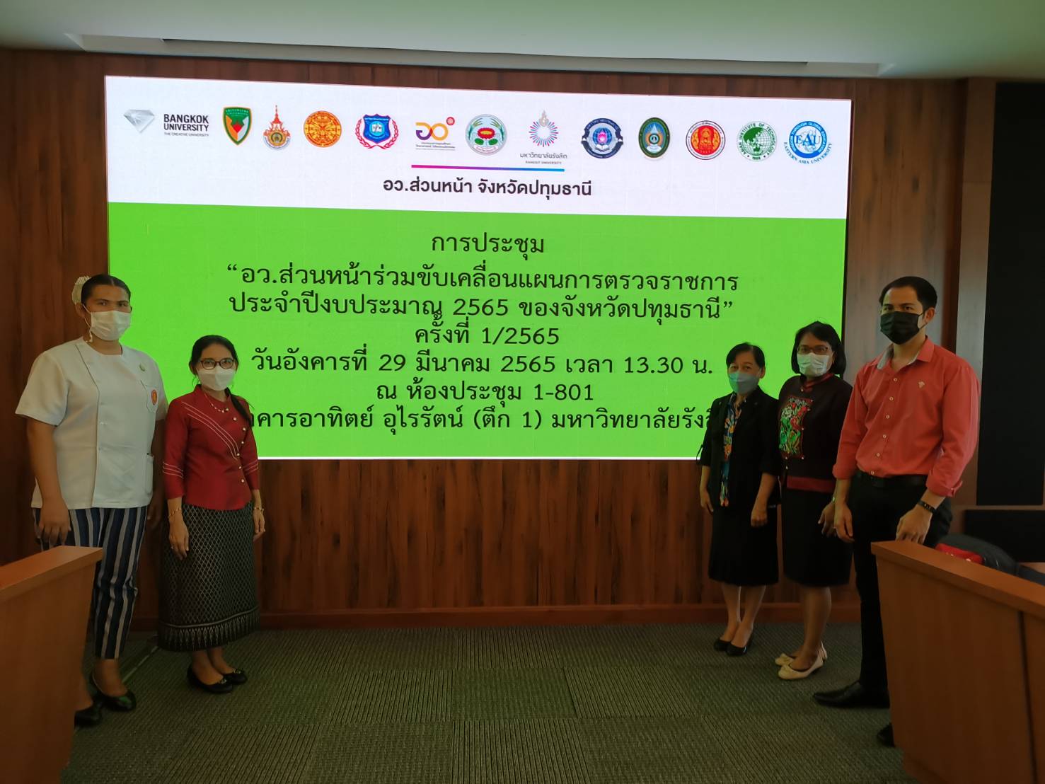 เข้าร่วมประชุม "อว.ส่วนหน้าร่วมขับเคลื่อนแผนการตรวจราชการประจำปีงบประมาณ 2565 ของจังหวัดปทุมธานี" ครั้งที่ 1/2565 ณ ห้องประชุม 1-801 ชั้น 8 อาคารอาทิตย์ อุไรรัตน์ (ตึก 1) มหาวิทยาลัยรังสิต เพื่อบูรณาการองค์ความรู้ เทคโนโลยีนวัตกรรมด้านวิชาชีพให้เกิดประโยชน์ต่อการพัฒนาสังคมชุมชน