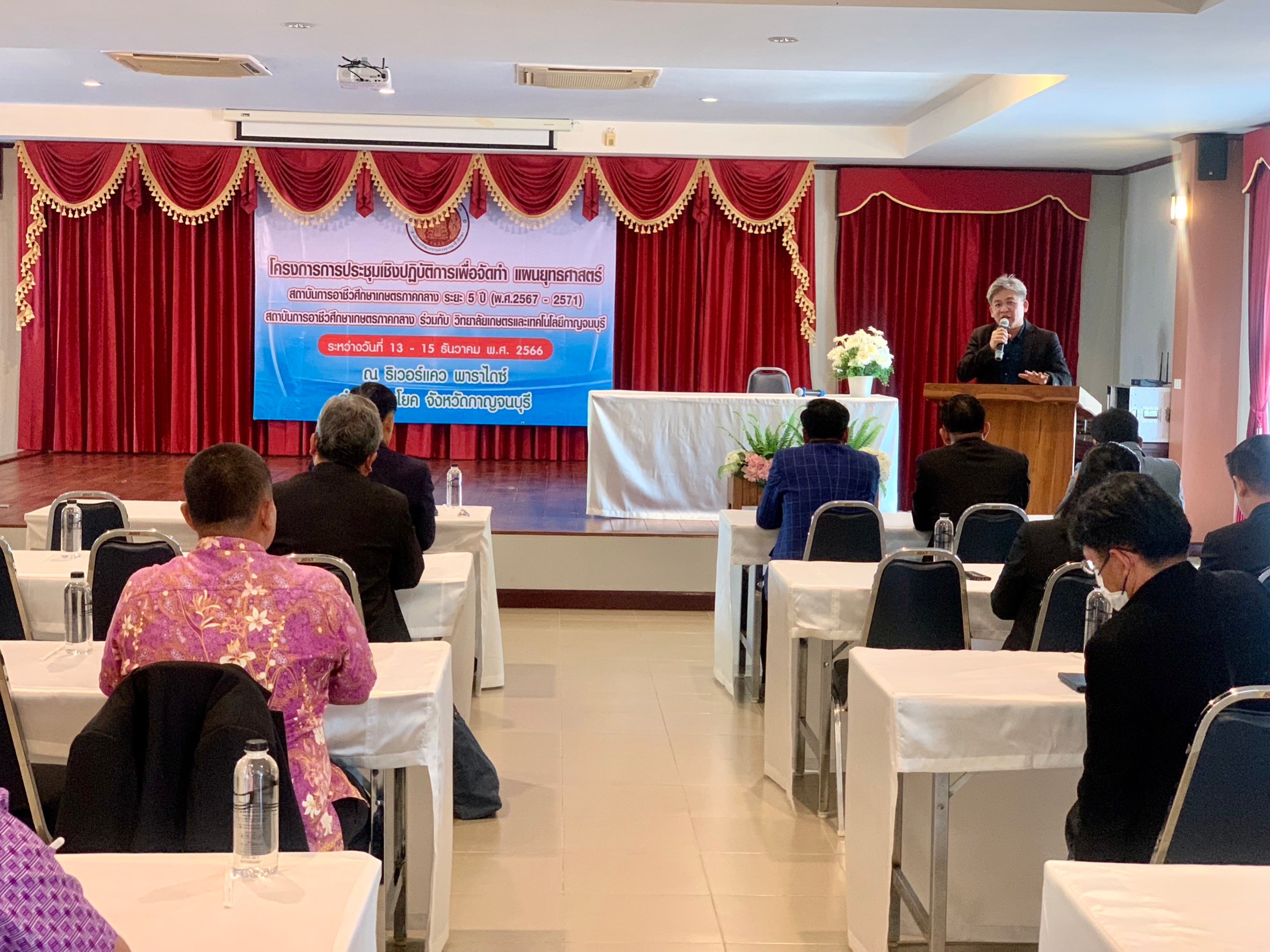 ดร.ปรีชา เวชศาสตร์ รักษาการในตำแหน่ง ที่ปรึกษาเฉพาะด้านเกษตรกรรมและประมง สอศ. ให้เกียรติเป็นประธานในการประชุม เพื่อจัดทำยุทธศาสตร์ สถาบันการอาชีวศึกษาเกษตรภาคกลาง (พ.ศ. 2567-2571) ณ จ.กาญจนบุรี ระหว่างวันที่ 13-15 ธันวาคม 2566 โดยมีผู้บริหารสถาบันการอาชีวศึกษาเกษตรภาคกลาง (สษก.) พร้อมด้วยผู้บริหารสถานศึกษา คณาจารย์ และเจ้าหน้าที่ สถานศึกษาในสังกัด เข้าประชุมร่วมกัน โดย ดร.ปรีชาฯ ประธานการประชุม ได้นำเสนอข้อมูล การพัฒนากำลังคนอาชีวศึกษาเกษตรสมรรถนะสูง และการดำเนินงาน 1 วษท. 1 นิคม สำหรับเป็นแนวทางในการจัดทำยุทธศาสตร์ สษก.