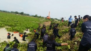 จากนั้นทุกคน ทุกภาคส่วนได้ระดมสรรพกำลังในการเก็บผักตบที่ปกคลุมผิวน้ำอยู่ประมาณ ๖๐ ไร่ โดยการนำของท่านผู้ว่าราชการจังหวัดนางฉัตรพร ราษฎร์ดุษดี ตั้งแต่เวลา ๙.๐๙ น. จนกระทั่งถึงเวลา บ่ายสองโมง ได้เกิดพายุ และมีฝนตกหนักมากลมพัดแรงจึงต้องหยุดปฏิบัติงาน แต่งานครั้งนี้ถือเป็นเพียงจุดเริ่มต้นที่จะต่อสู้ขจัดปัญหาที่สะสมมาในช่วงหนึ่งให้หมด ไปด้วยความมุ่งมั่น ไม่ท้อถอยของพวกเราชาวเกษตรเพชรบุรีต่อไป