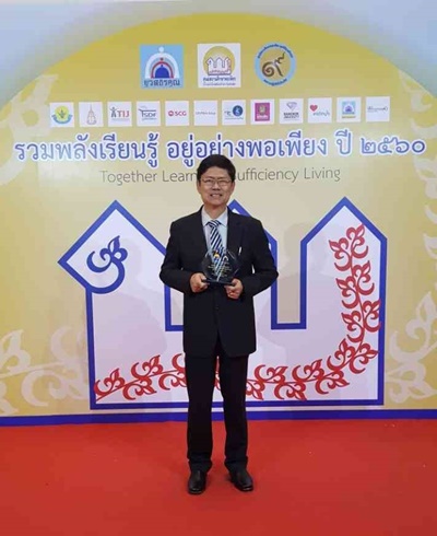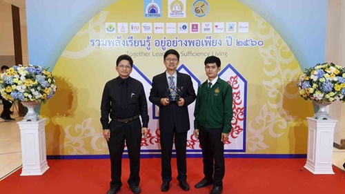 นายคัมภีร์ สายะสนธิ ผู้อำนวยการวิทยาลัยเกษตรและเทคโนโลยีเพชรบุรี รับโล่รางวัลสถานศึกษาพอเพียงที่มีผล งาน เป็นเลิศระดับประเทศ ประจำปี ๒๕๕๙ จาก ศ.นพ.เกษม วัฒนชัย ประธานมูลนินิยุวสถิรคณ พร้อมด้วยครูคมกริช นาคะศิริ หัวหน้าแผนกวิชาประมง และนายศุภณัฐ พรหมาลี นักศึกษาที่ประสบความสำเร็จในการประกอบอาชีพอิสระโดยน้อมนำปรัชญาของเศรษฐกิจพอเพียงมาประยุกต์ใช้จนประสบความสำเร็จ