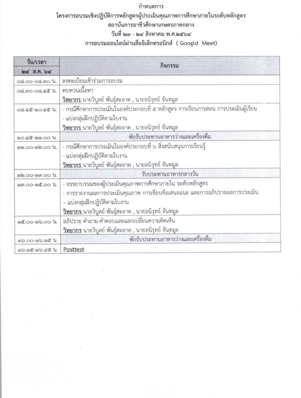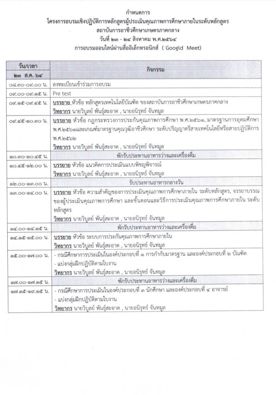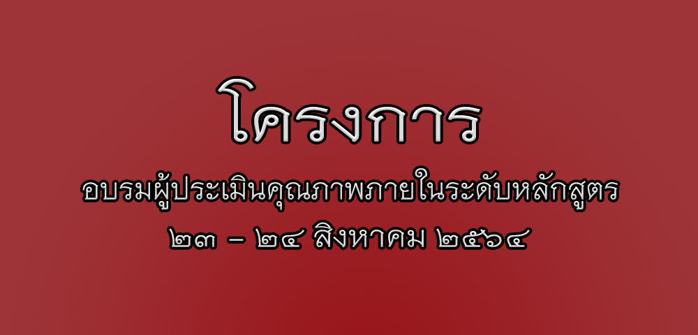 โครงการอบรมผู้ประเมินคุณภาพภายในระดับหลักสูตร Published: 23 August 2021 Written by Tuang Category: ประกาศ โครงการอบรมผู้ประเมินคุณภาพภายในระดับหลักสูตร แบบฟอร์มลงทะเบียนเข้าร่วมโครงการอบรมผู้ประเมินภายในระดับหลักสูตร แบบทดสอบก่อนและหลังการอบรม ผู้ประเมินคุณภาพภายในระดับหลักสูตร แบบประเมิน เอกสารประกอบการอบรม บันทึกการอบรม วันจันทร์ที่ 23 สิงหาคม 2564 บันทึกการอบรม วันอังคารที่ 24 สิงหาคม 2564