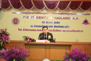 วันที่ 20 มีนาคม 2560 เวลา 09.00 น. นายสินเธาว์ ชัยสวัสดิ์ ตำแหน่งที่ปรึกษาด้านมาตรฐานอาชีวศึกษาธุรกิจและบริการ เป็นประธานเปิดงานการพัฒนารูปแบบและยกระดับคุณภาพ FIT IT CENTER ศูนย์ซ่อมสร้างเพื่อชุมชน THAILAND 4.0 ภาคตะวันออกและกรุงเทพฯ ณ บริเวณหน้าลานพระสยามเทวาธิราชจำลอง อำเภออรัญประเทศ จังหวัดสระแก้ว โดยการจัดงานครั้งนี้วิทยาลัยเกษตรและเทคโนโลยีสระแก้วร่วมมือกับอาชีวะจังหวัดสระแก้ว ในงานมีตัวแทนจากวิทยาลัยสังกัดอาชีวะภาคตะวันออกและกรุงเทพฯ ให้ความสนใจเข้าร่วมงานและเยี่ยมชมกิจกรรมต่างๆมากมาย