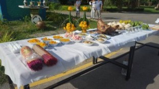 เช้าวานนี เวลา ๘.๓๙ น. วิทยาลัยเกษตรและเทคโนโลยีเพชรบุรีทำพิธิบวงสรวงขอฝนต่อพระพิรุณ ท้าววิรุฬหกและเหล่าเทพยดา๑๖ชั้นฟ้า ใช้เสียงหลวงพ่อฤาษีลิงดำ บทชุทนุมเทวดาในการอัญเชิญ มีผู้ร่วมในพิธี๑๖ คน ยืนประจำ ๘ ทิศๆละ ๒ คน ขอฝนท่วมท้นล้นอ่างหนองจิก และทุกอ่างที่มี เพื่อความเจริญสุข ฉ่ำเย็นและความเจริญรุ่งเรืองของวิทยาลัย นักเรียนนักศึกษาและบุคลากร ชาว วษท.เพชรบุรี สืบไป