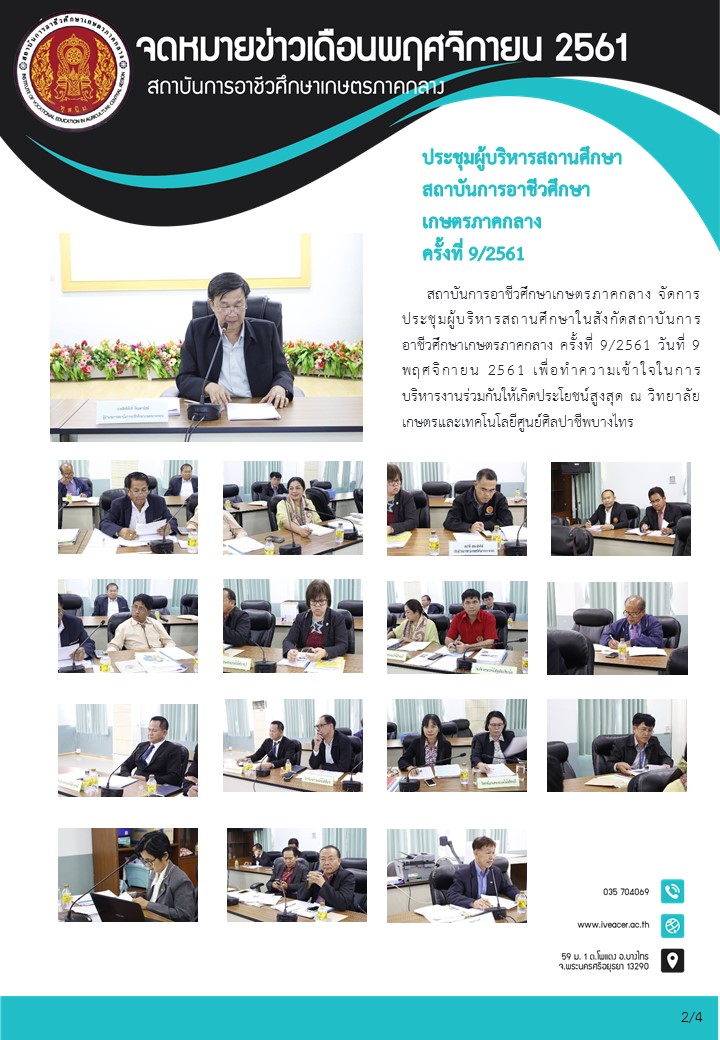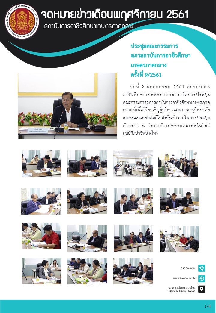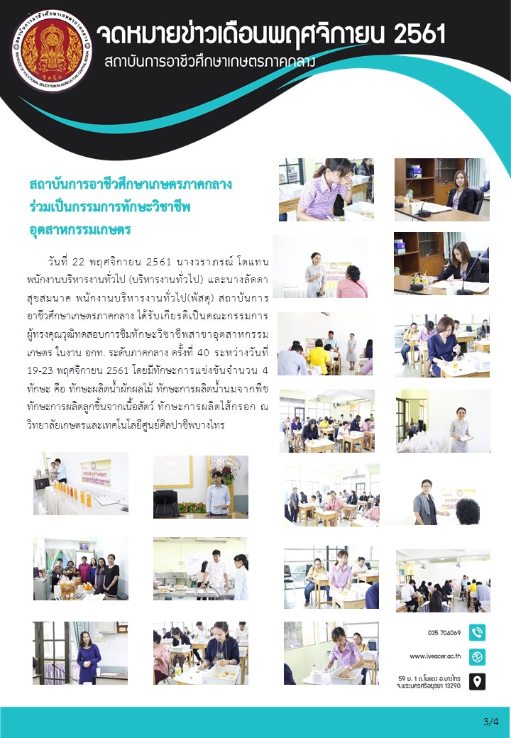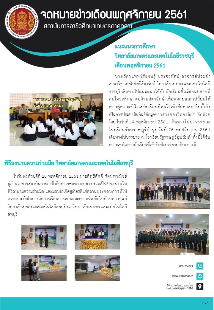 จดหมายข่าวเดือน พฤศจิกายน 2561 Published: 13 February 2019 Written by jane Category: จดหมายข่าว จดหมายข่าวเดือน พฤศจิกายน 2561 ของสถาบันการอาชีวศึกษาเกษตรภาคกลาง