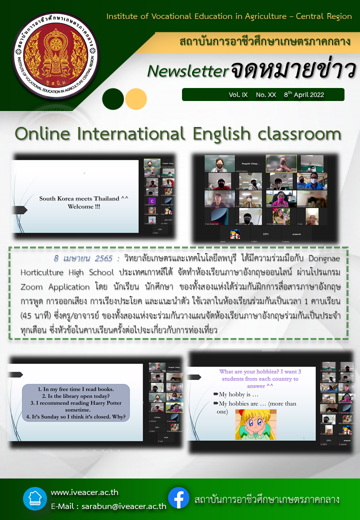 จดหมายข่าวเดือนเมษายน 2565 Published: 08 April 2022 Written by Tuang Category: จดหมายข่าว จดหมายข่าวเดือนเมษายน 2565