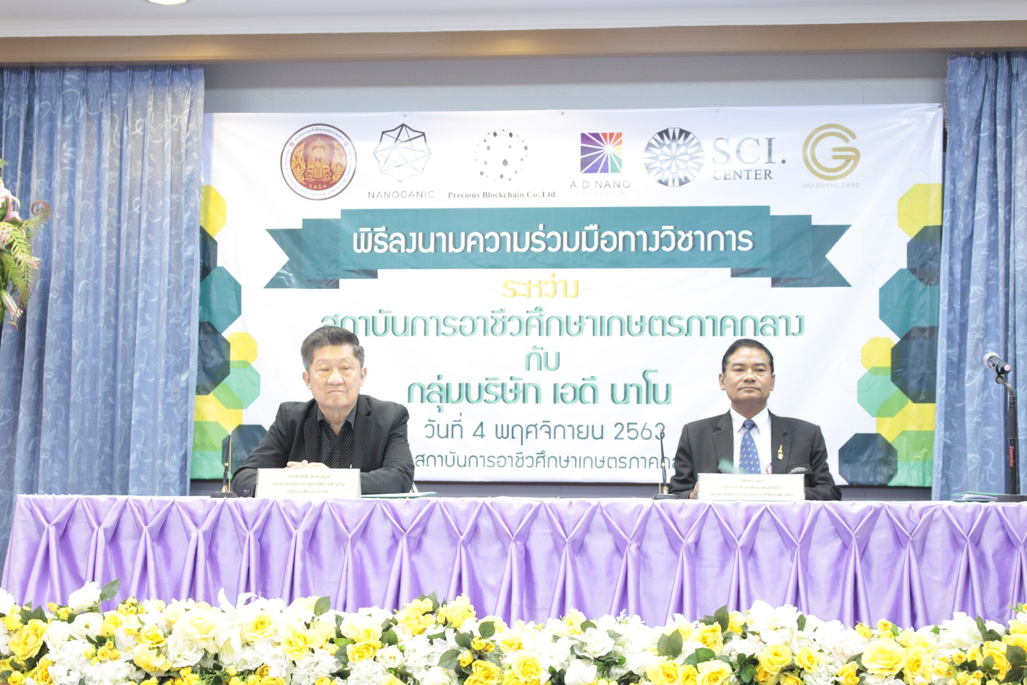 วันที่ 4 พฤศจิกายน 2563 สถาบันการอาชีวศึกษาเกษตรภาคกลาง ได้จัดพิธีลงนามความร่วมมือระหว่าง สถาบันการอาชีวศึกษาเกษตรภาคกลาง กับ กลุ่มบริษัท เอดี นาโน จำกัด