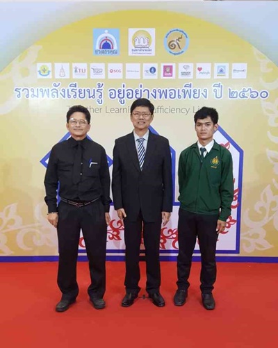 นายคัมภีร์ สายะสนธิ ผู้อำนวยการวิทยาลัยเกษตรและเทคโนโลยีเพชรบุรี รับโล่รางวัลสถานศึกษาพอเพียงที่มีผล งาน เป็นเลิศระดับประเทศ ประจำปี ๒๕๕๙ จาก ศ.นพ.เกษม วัฒนชัย ประธานมูลนินิยุวสถิรคณ พร้อมด้วยครูคมกริช นาคะศิริ หัวหน้าแผนกวิชาประมง และนายศุภณัฐ พรหมาลี นักศึกษาที่ประสบความสำเร็จในการประกอบอาชีพอิสระโดยน้อมนำปรัชญาของเศรษฐกิจพอเพียงมาประยุกต์ใช้จนประสบความสำเร็จ