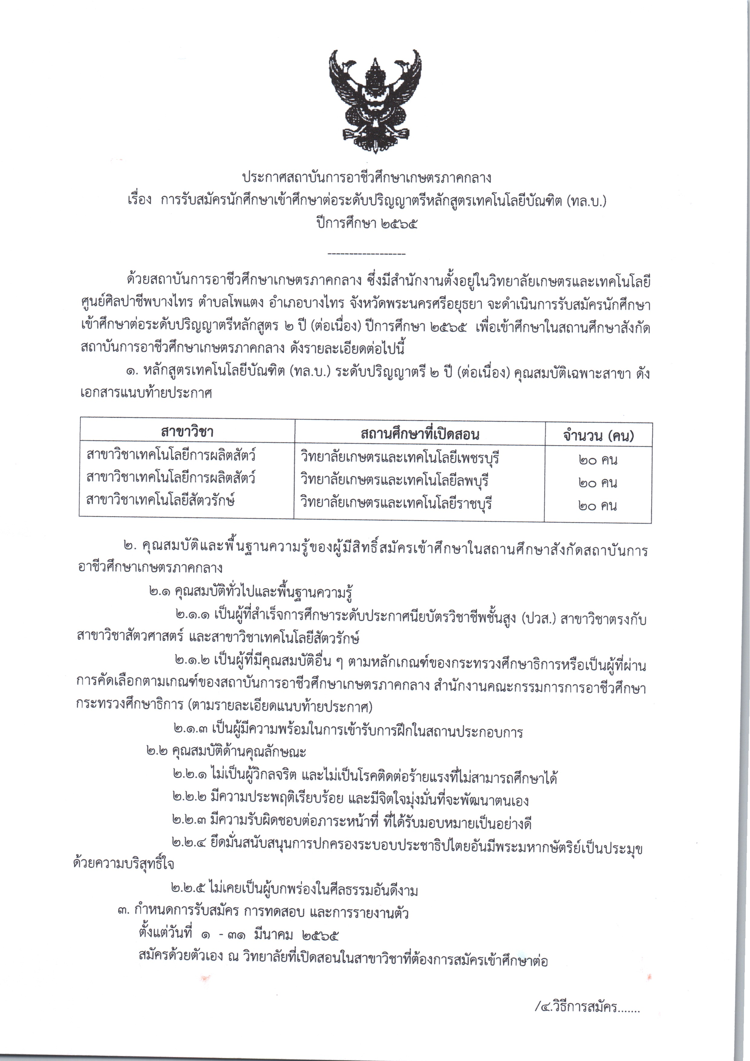 ประกาศ การรับสมัครนักศึกษาเข้าศึกษาต่อระดับปริญญาตรีหลักสูตรเทคโนโลยีบัณฑิต (ทล.บ.) ปีการศึกษา 2565 Published: 15 February 2022 Written by Tuang Category: ประกาศ ประกาศ การรับสมัครนักศึกษาเข้าศึกษาต่อระดับปริญญาตรีหลักสูตรเทคโนโลยีบัณฑิต (ทล.บ.) ปีการศึกษา 2565 ประกาศ