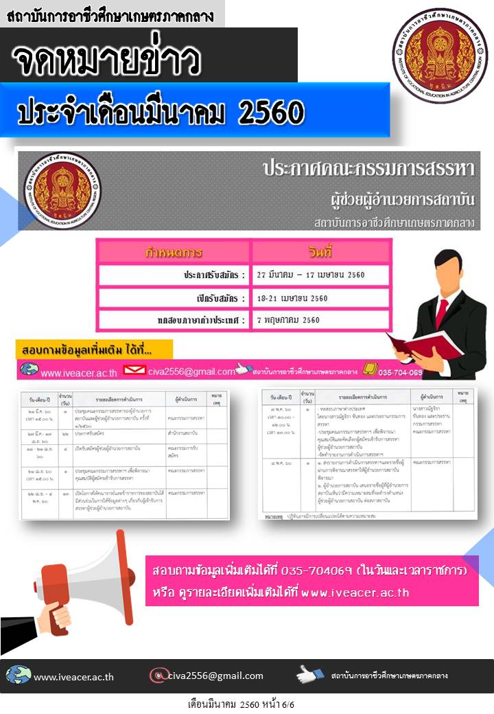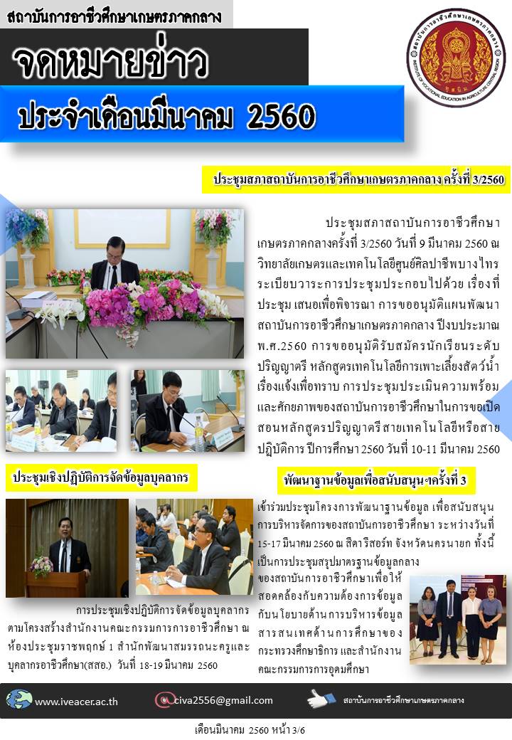 จดหมายข่าวเดือนมีนาคม 2560 Published: 05 September 2017 Written by Super User Category: จดหมายข่าว จดหมายข่าว เดือนมีนาคม 2560