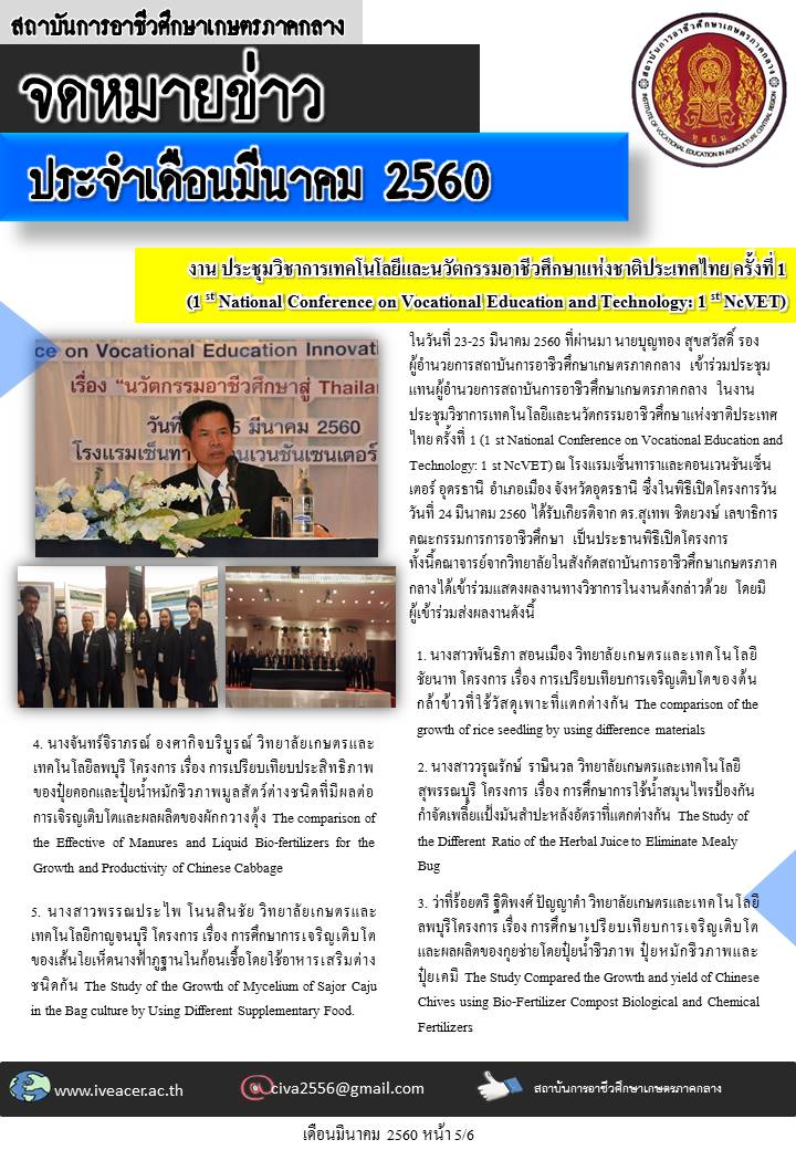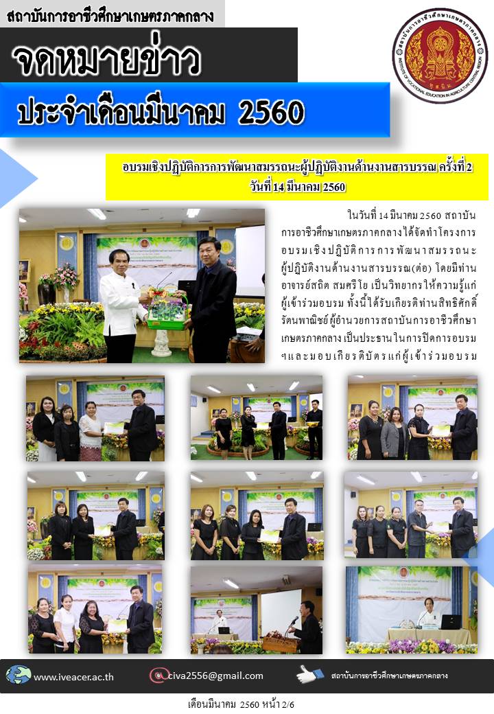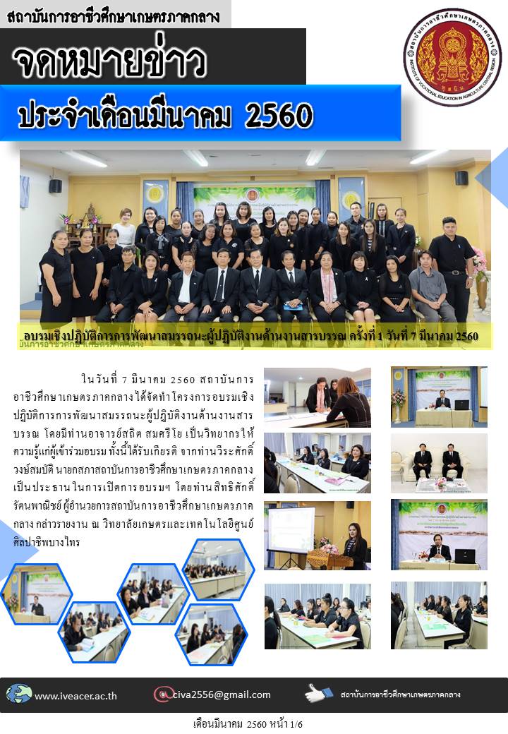 จดหมายข่าวเดือนมีนาคม 2560 Published: 05 September 2017 Written by Super User Category: จดหมายข่าว จดหมายข่าว เดือนมีนาคม 2560
